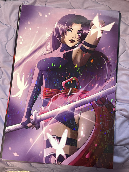 A holographic 11x17 poster printed on semi-gloss cardstock.